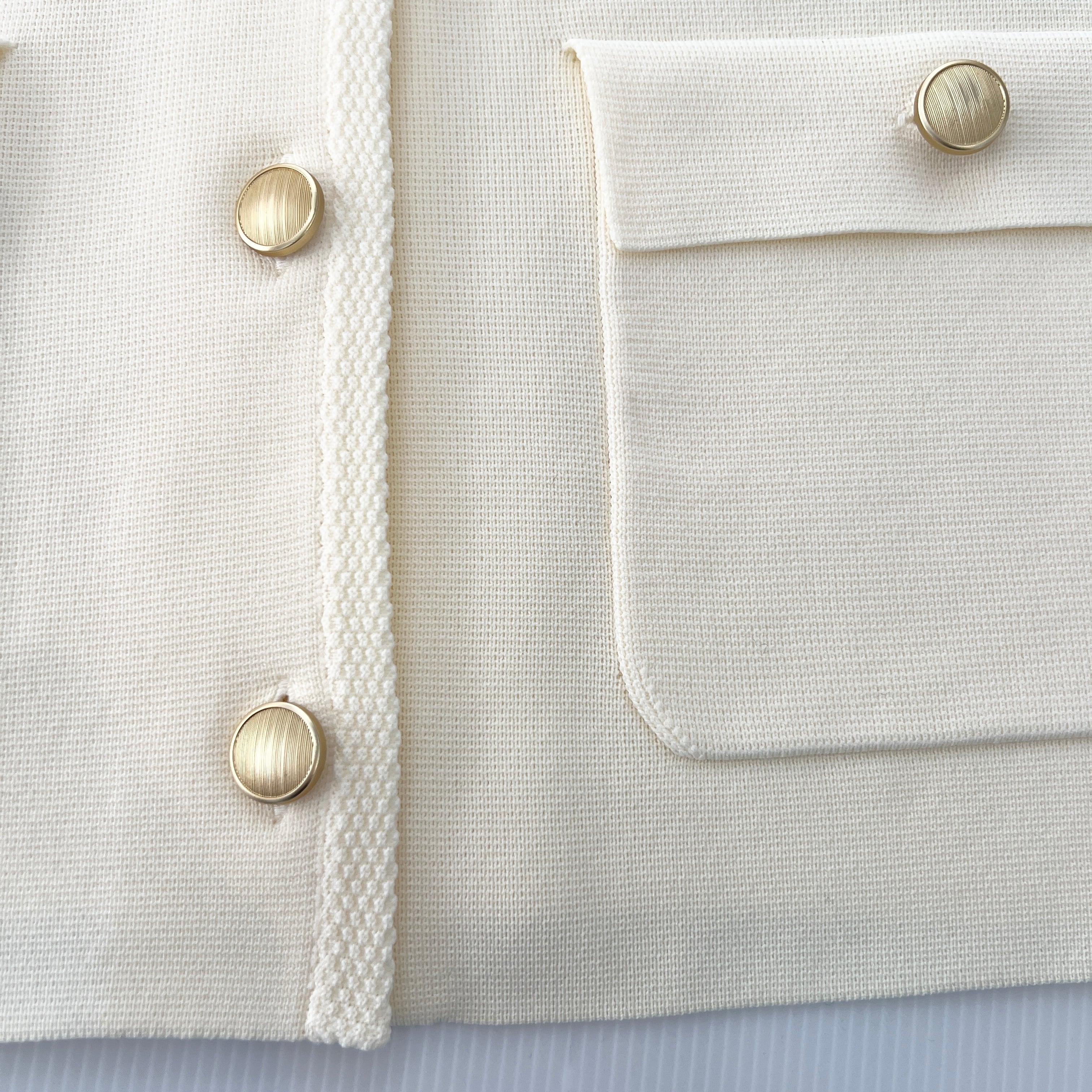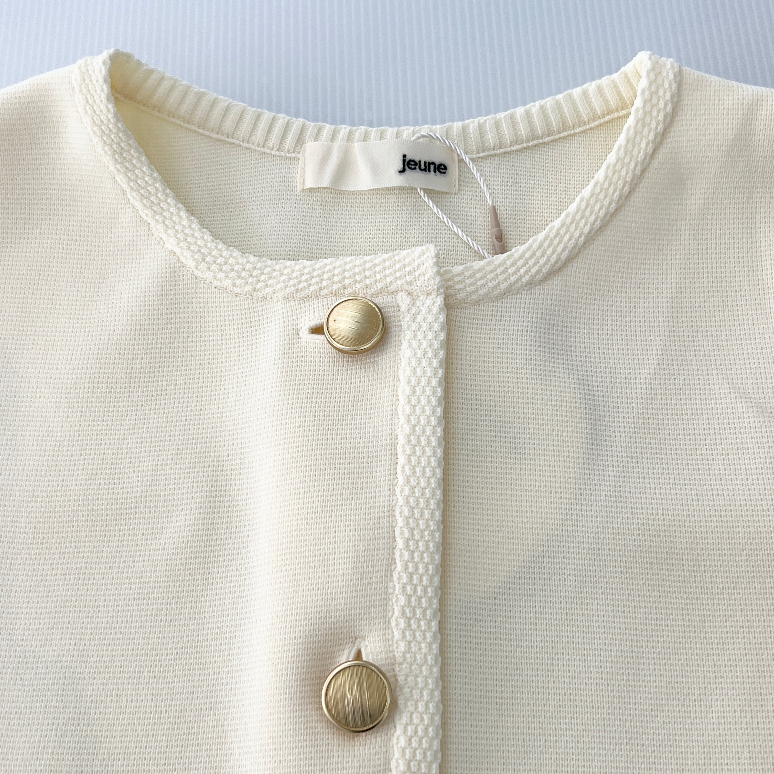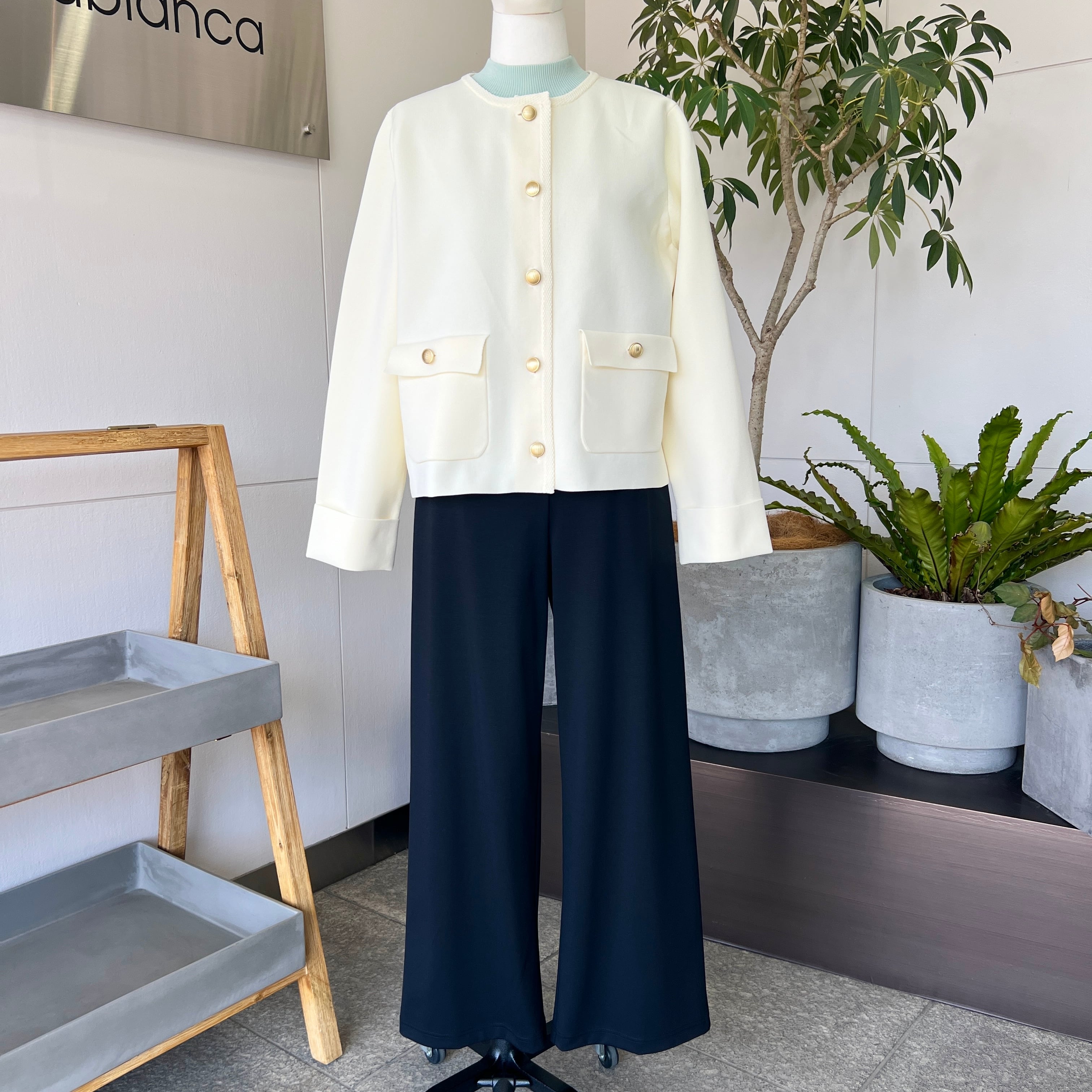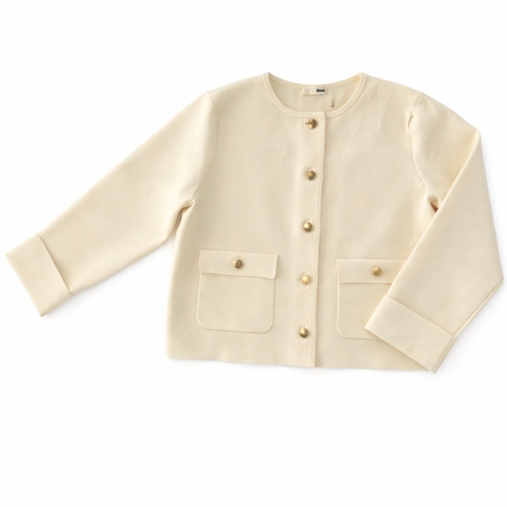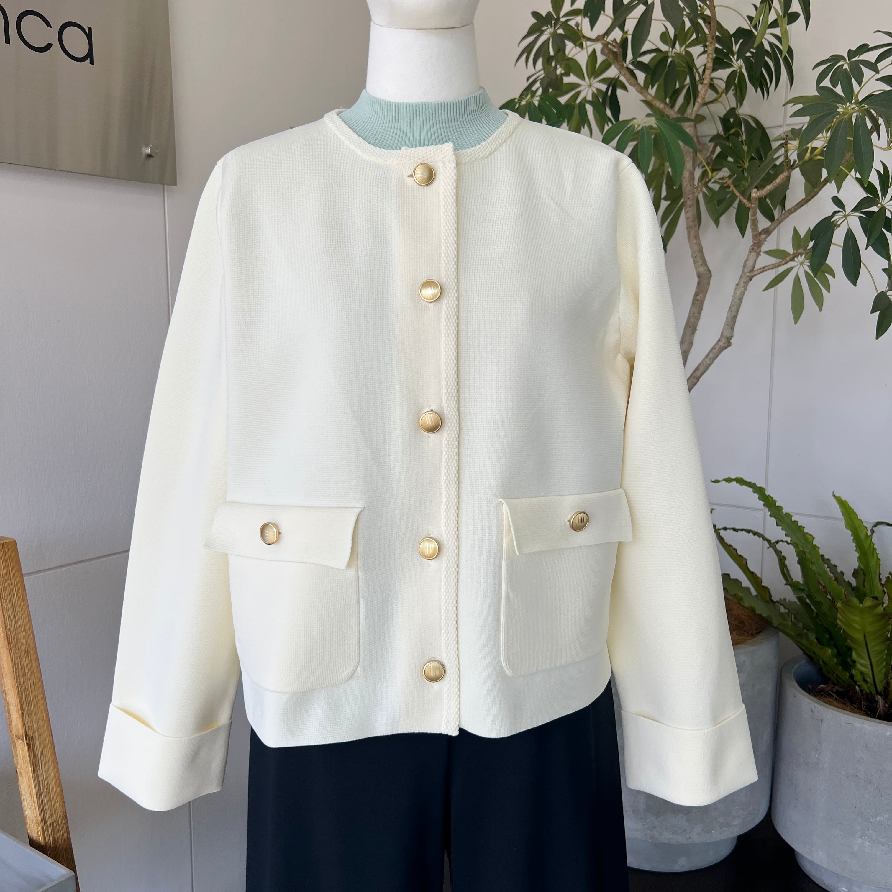 ・ミラノリブの金ボタンがお洒落なニットジャケットです。