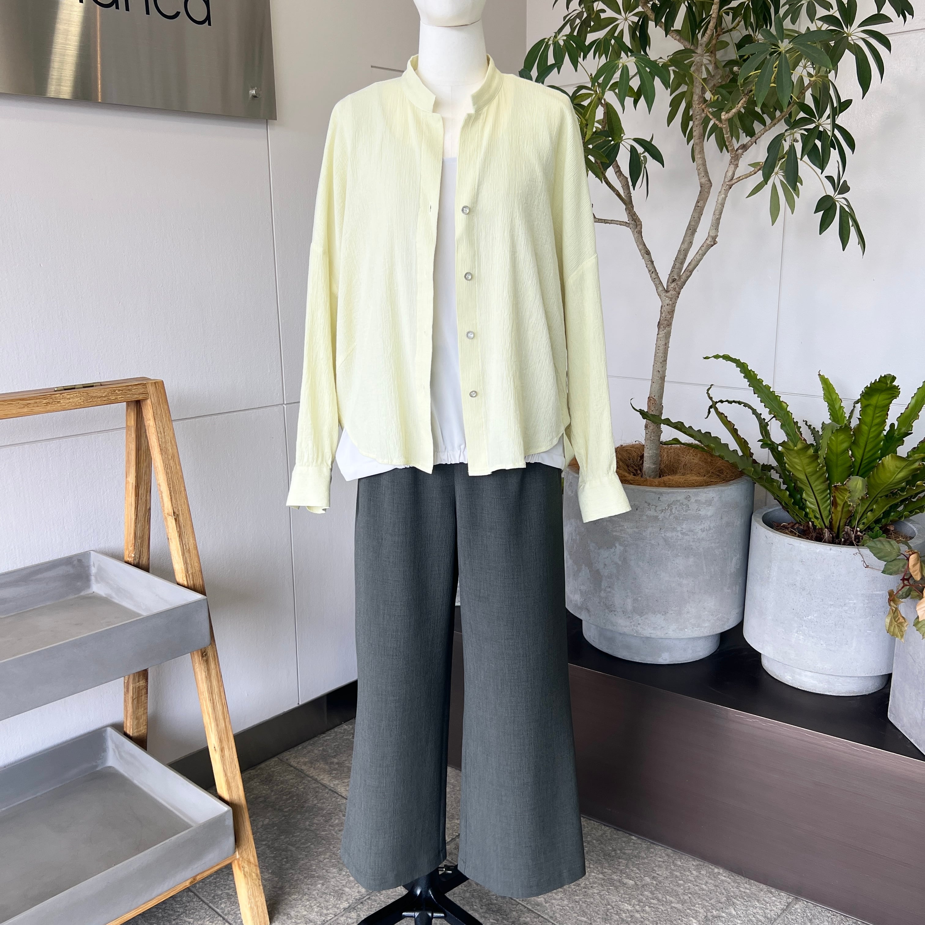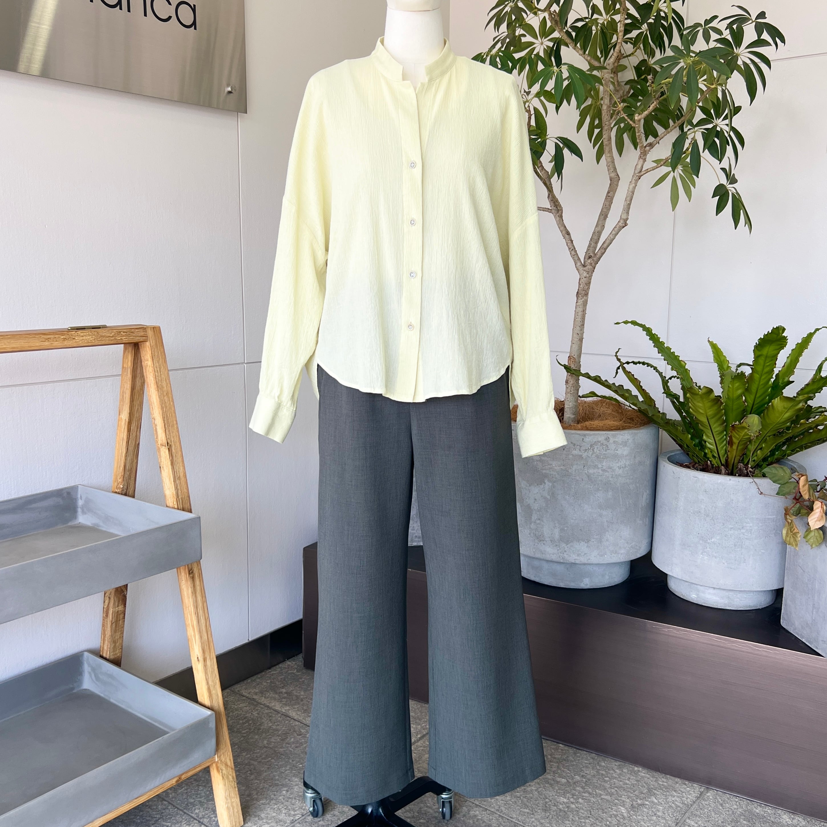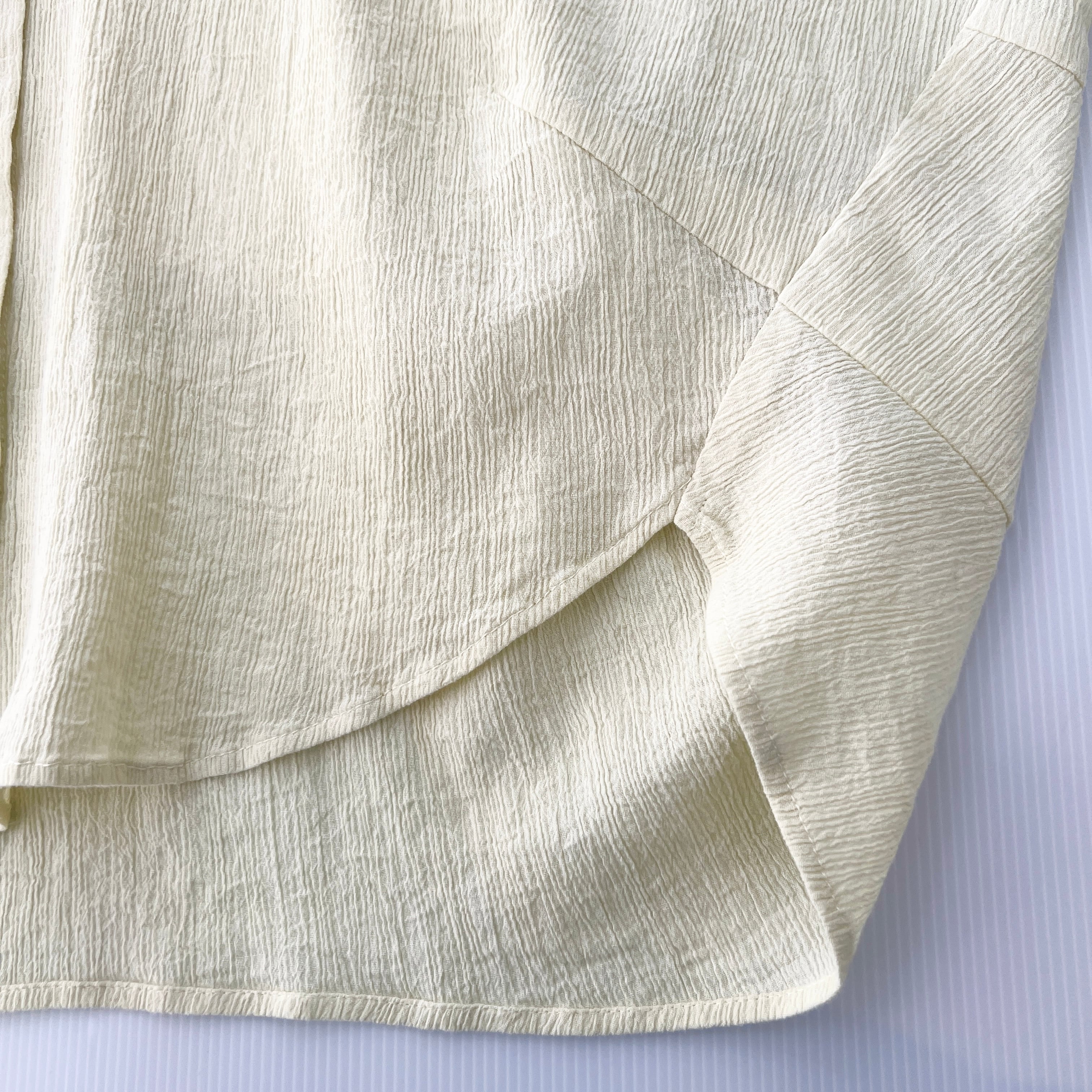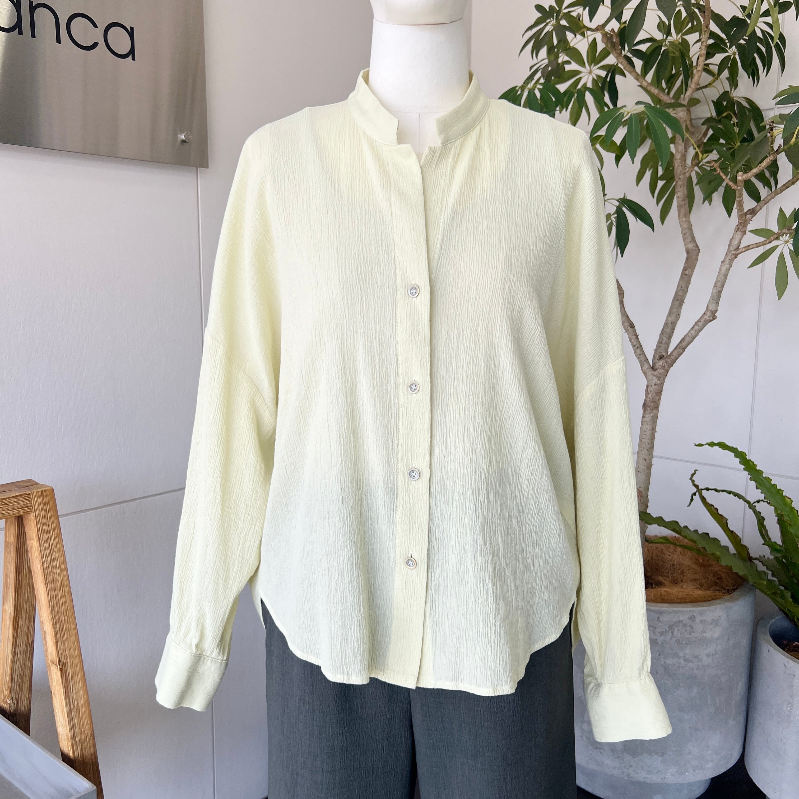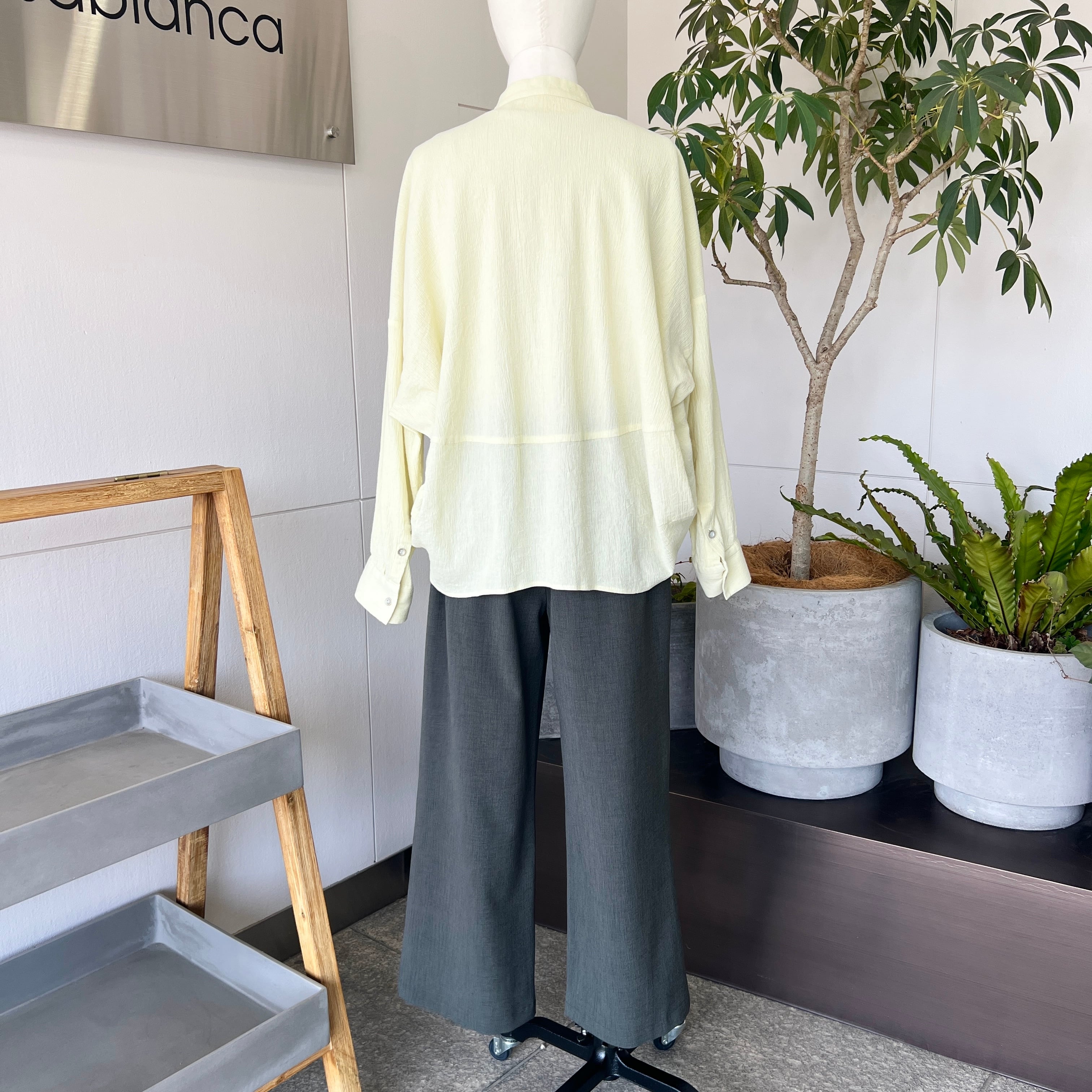 ・淡いカラーのコットン100%のスキッパーブラウスです。