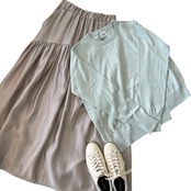 ・斜めに入った切替デザインがアクセントでイレギュラーなヘムがポイントでお洒落です。