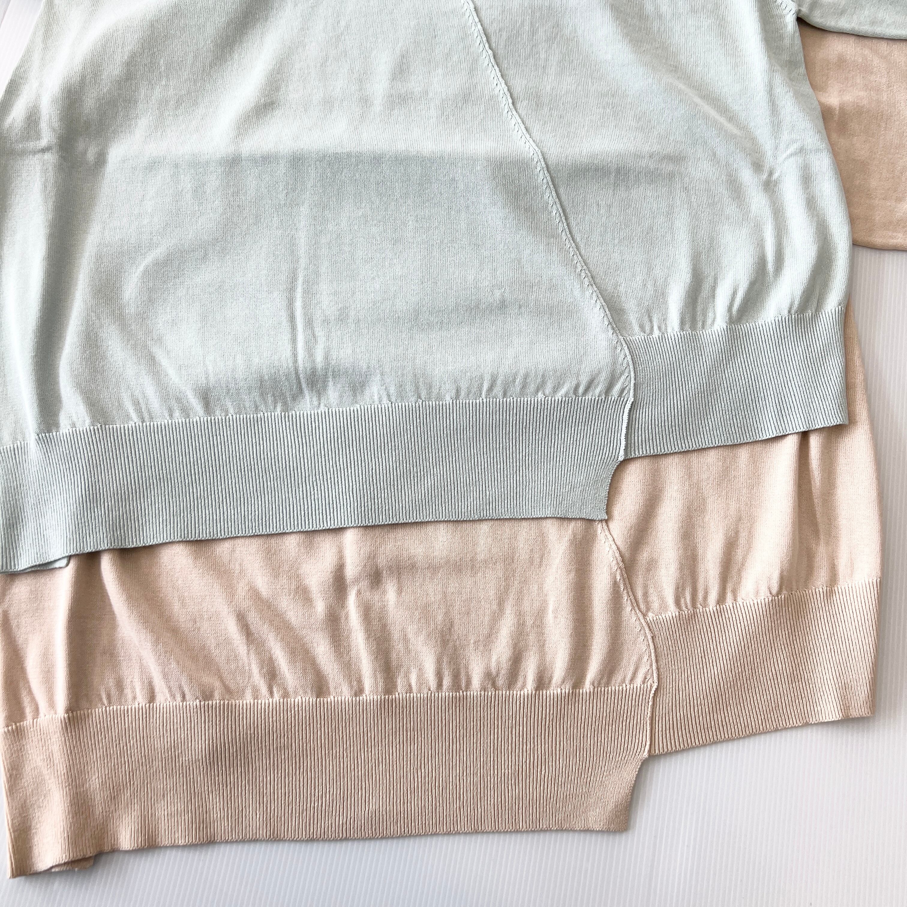 ・コットン素材のイレギュラーヘムがお洒落なニットです。
