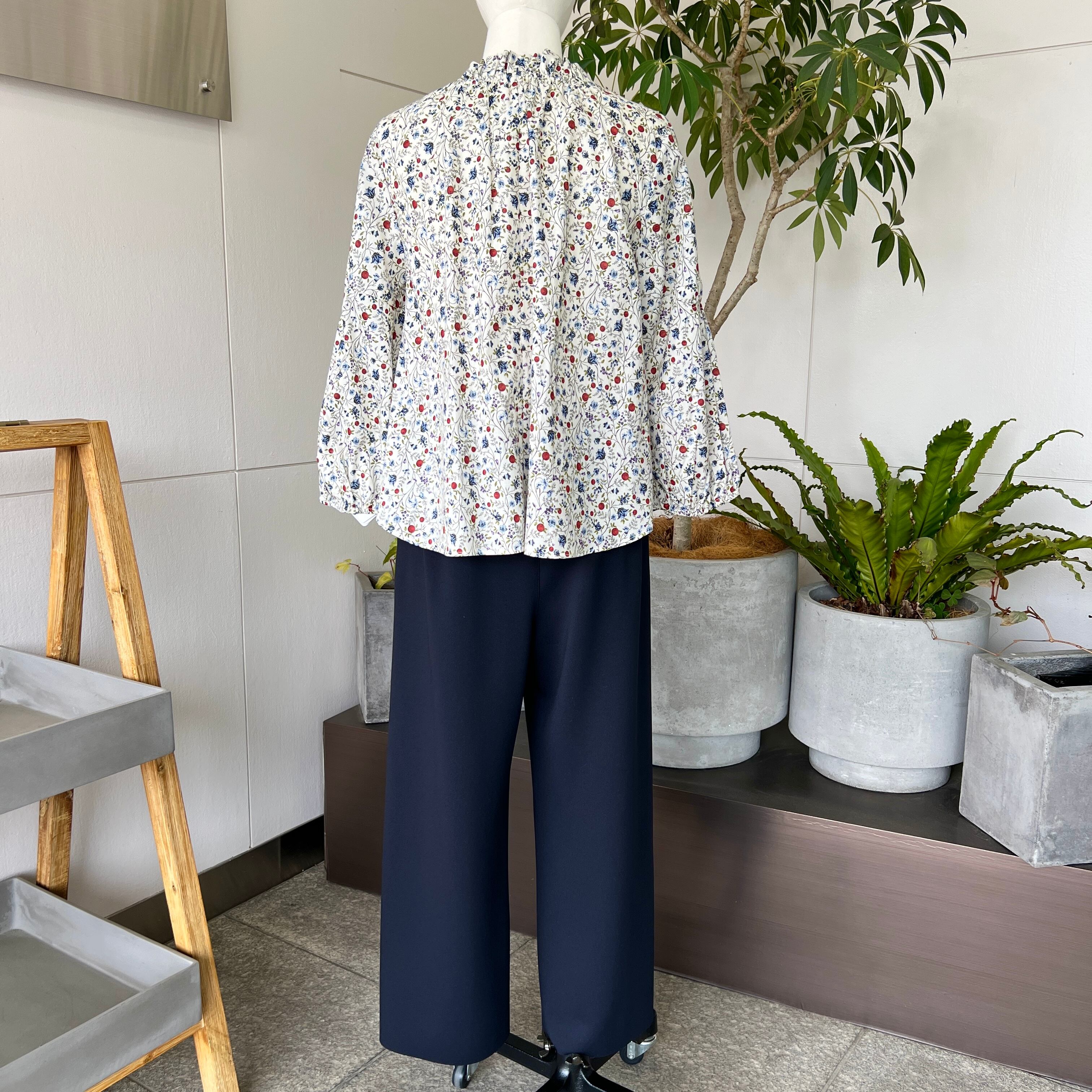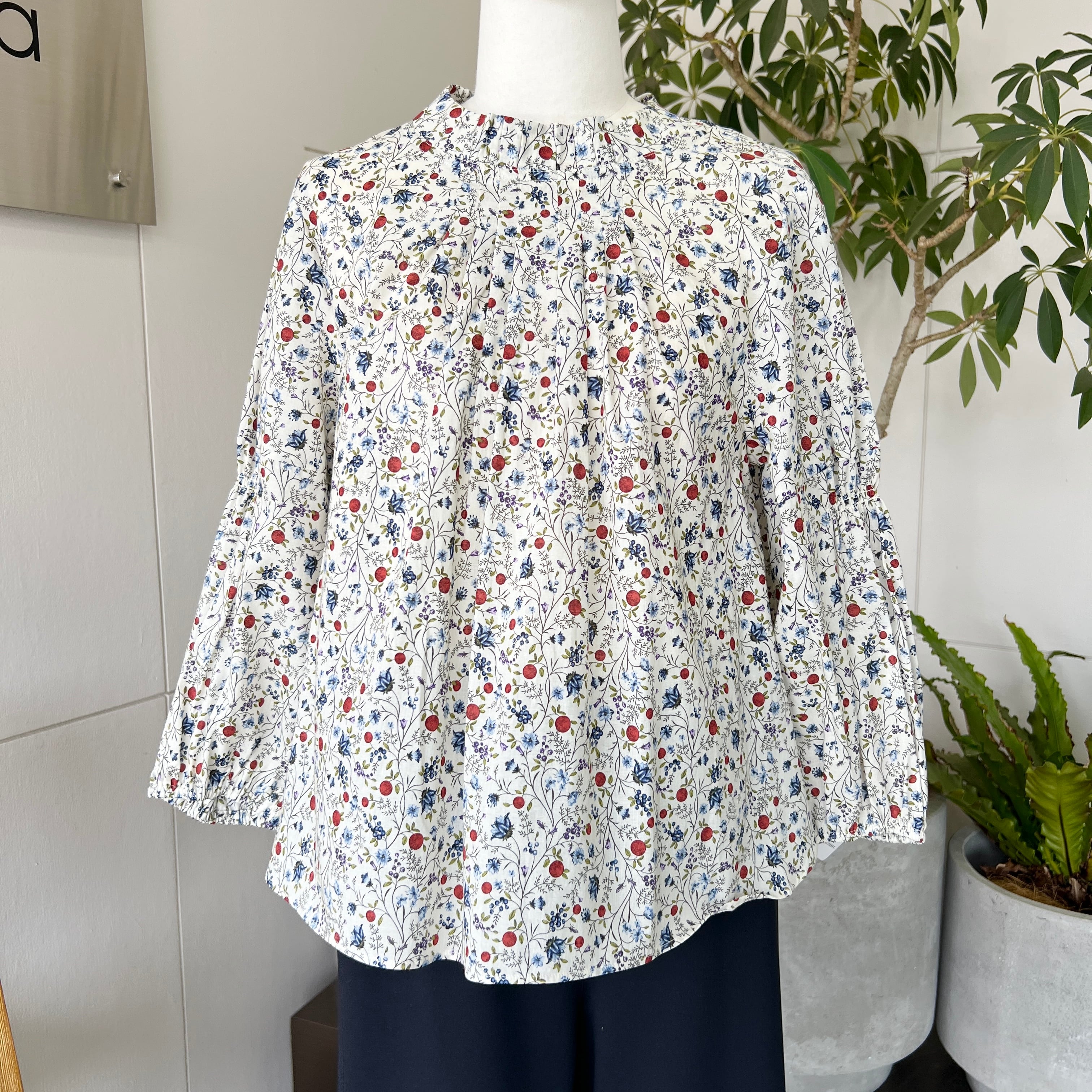 ・フラワープリントのタックスリーブがポイントのプルオーバーブラウスです。