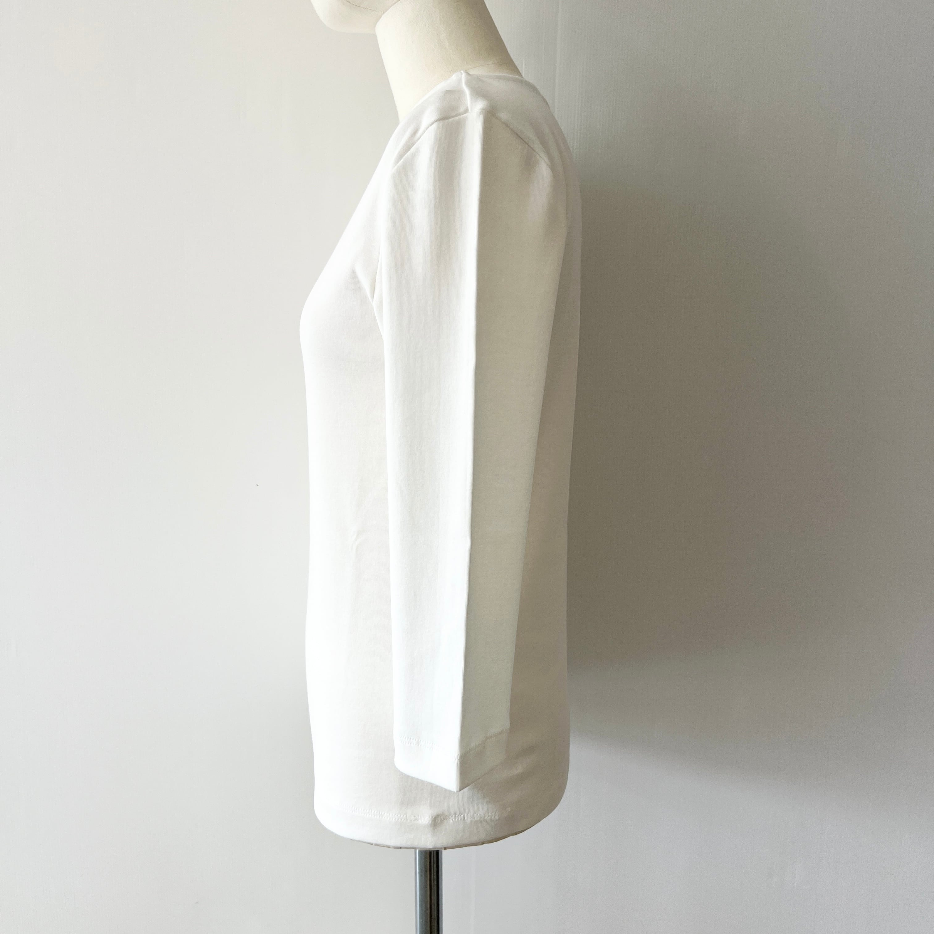 ・コットン素材のボートネックがお洒落な七分袖カットソーです。