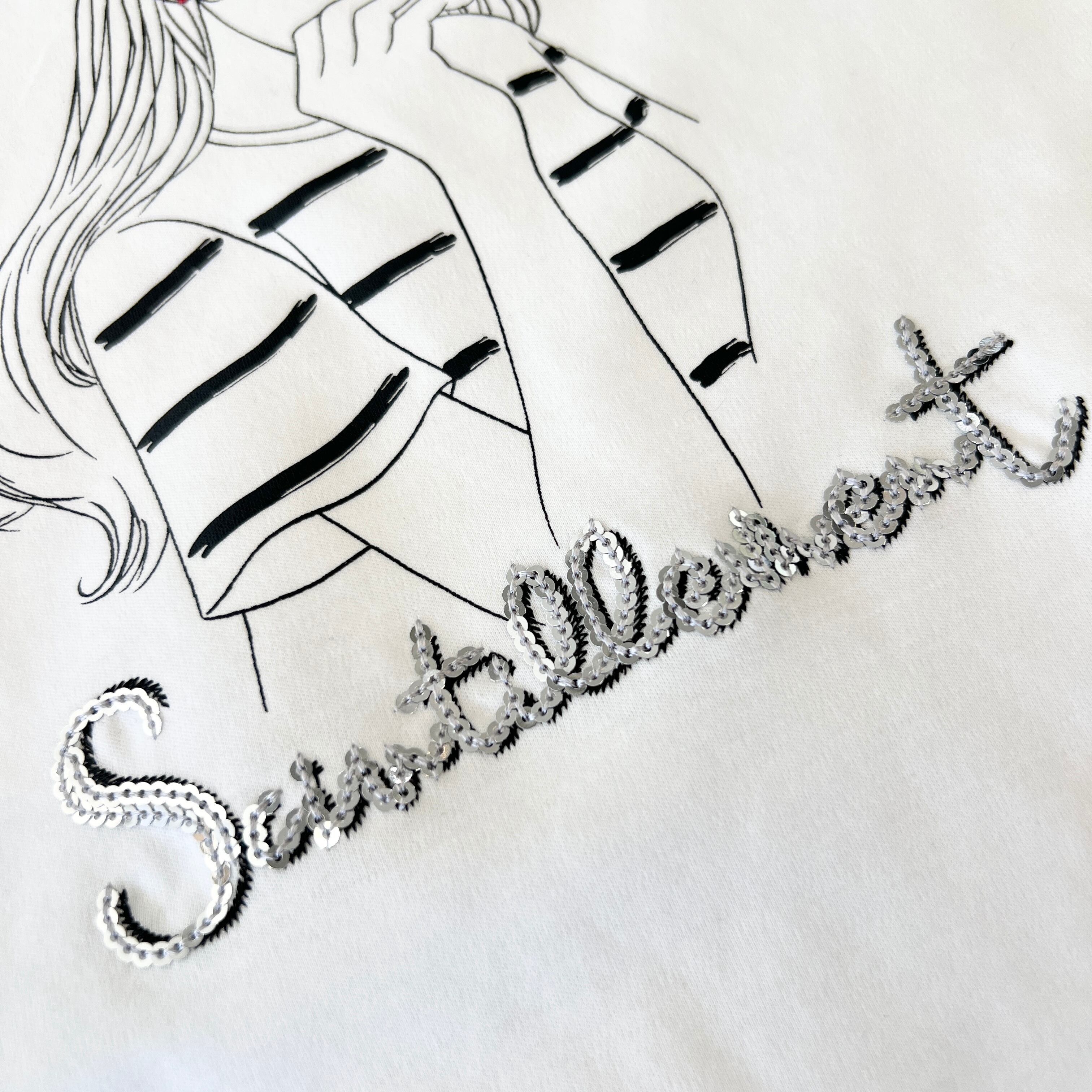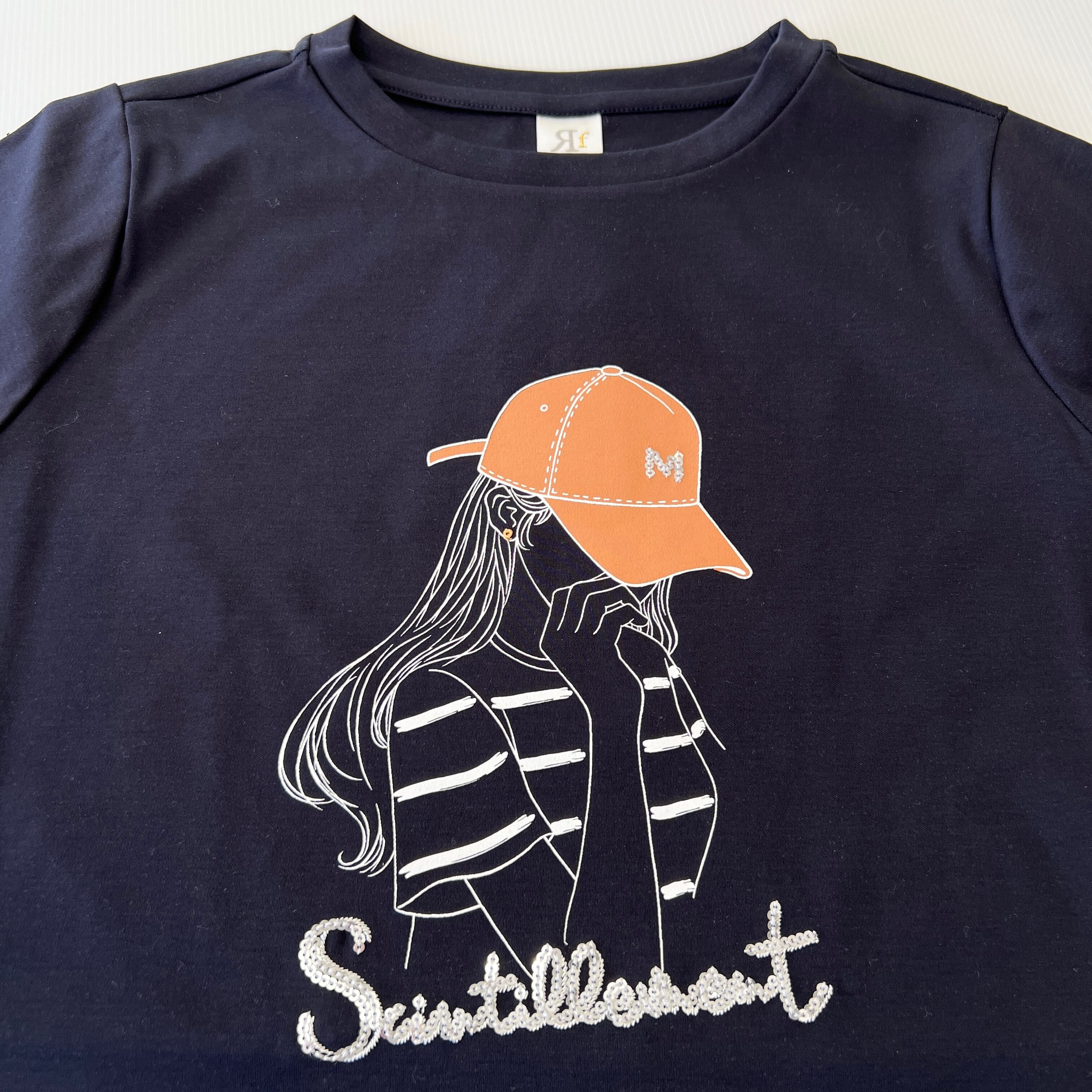 ・女の子のプリントとスパンコール刺繍がポイントのボリュームスリーブがかわいいカットソーです。
