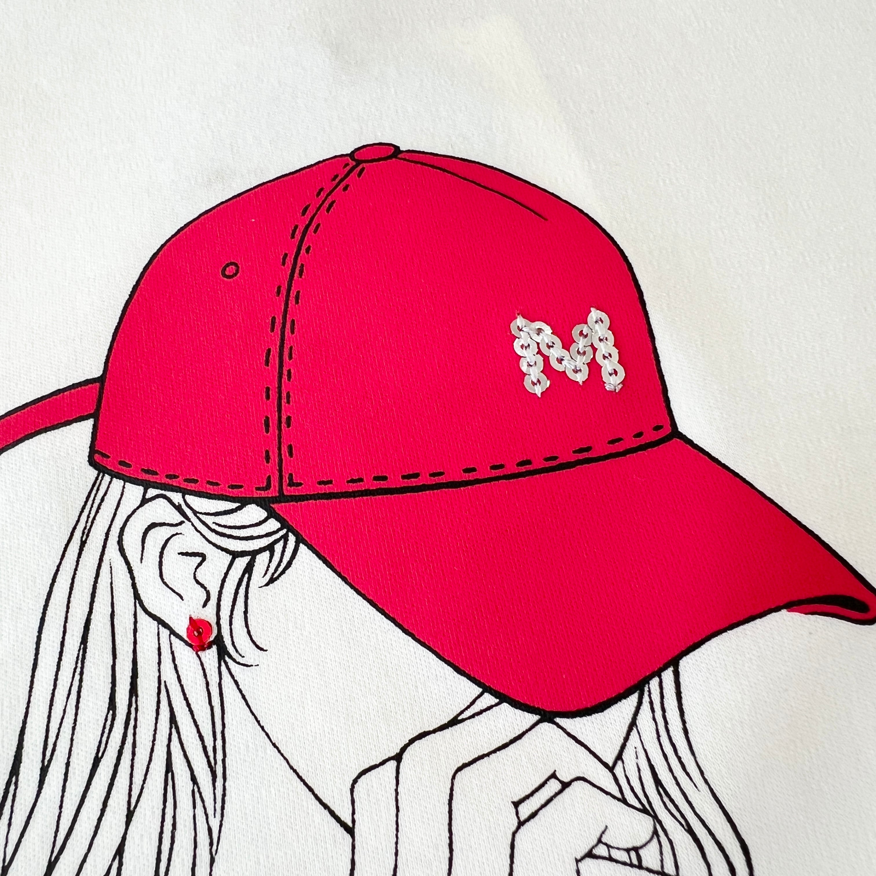 ・プリント・ロゴや帽子・イヤリング部分のスパンコール刺繍・サイドスリットがポイントでお洒落です。