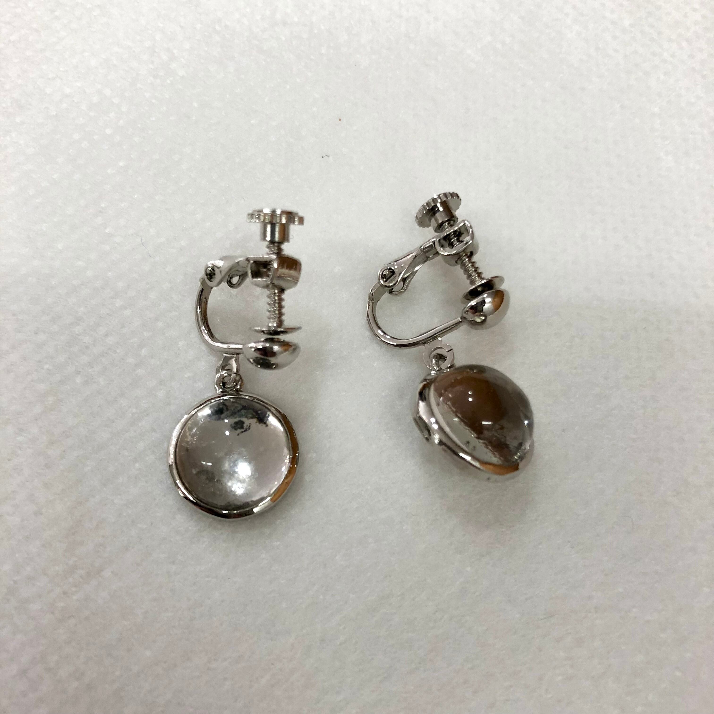 丸くカットした水晶が綺麗なシンプルデザインのシルバーカラーのイヤリングです。