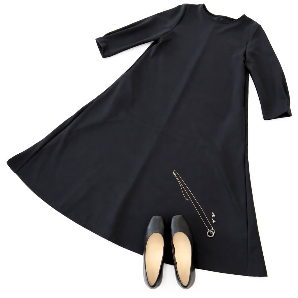 ジャージ 素材の七分袖 シンプルワンピース《FONTANA GRANDE フォンタナグランデ》