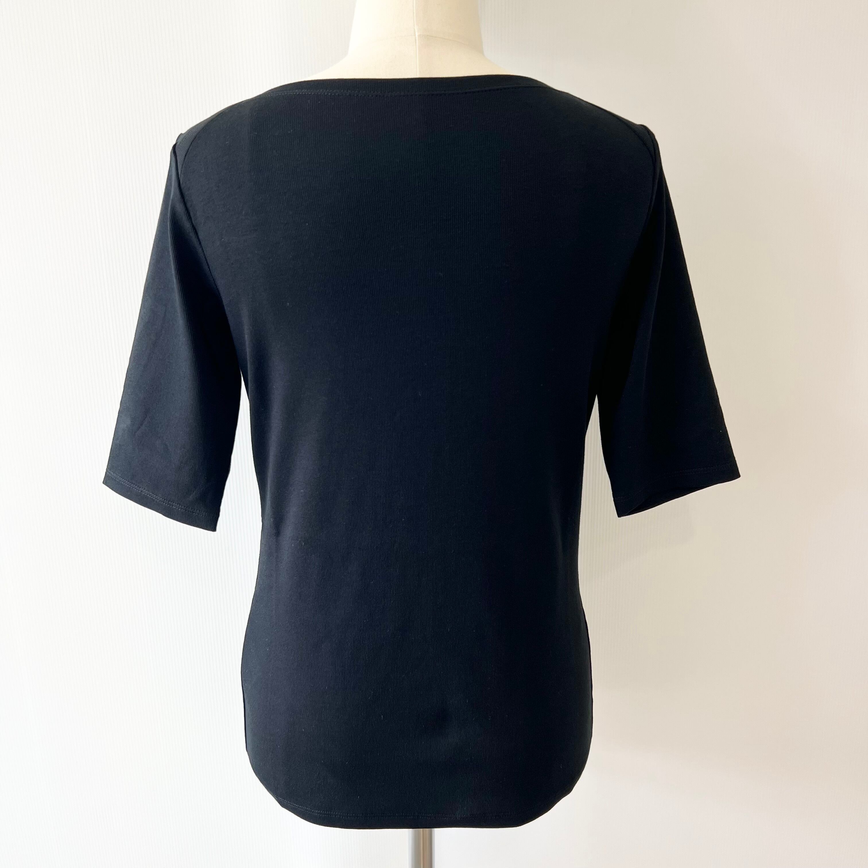 ・無地の五分袖 ボートネック リブTシャツです。