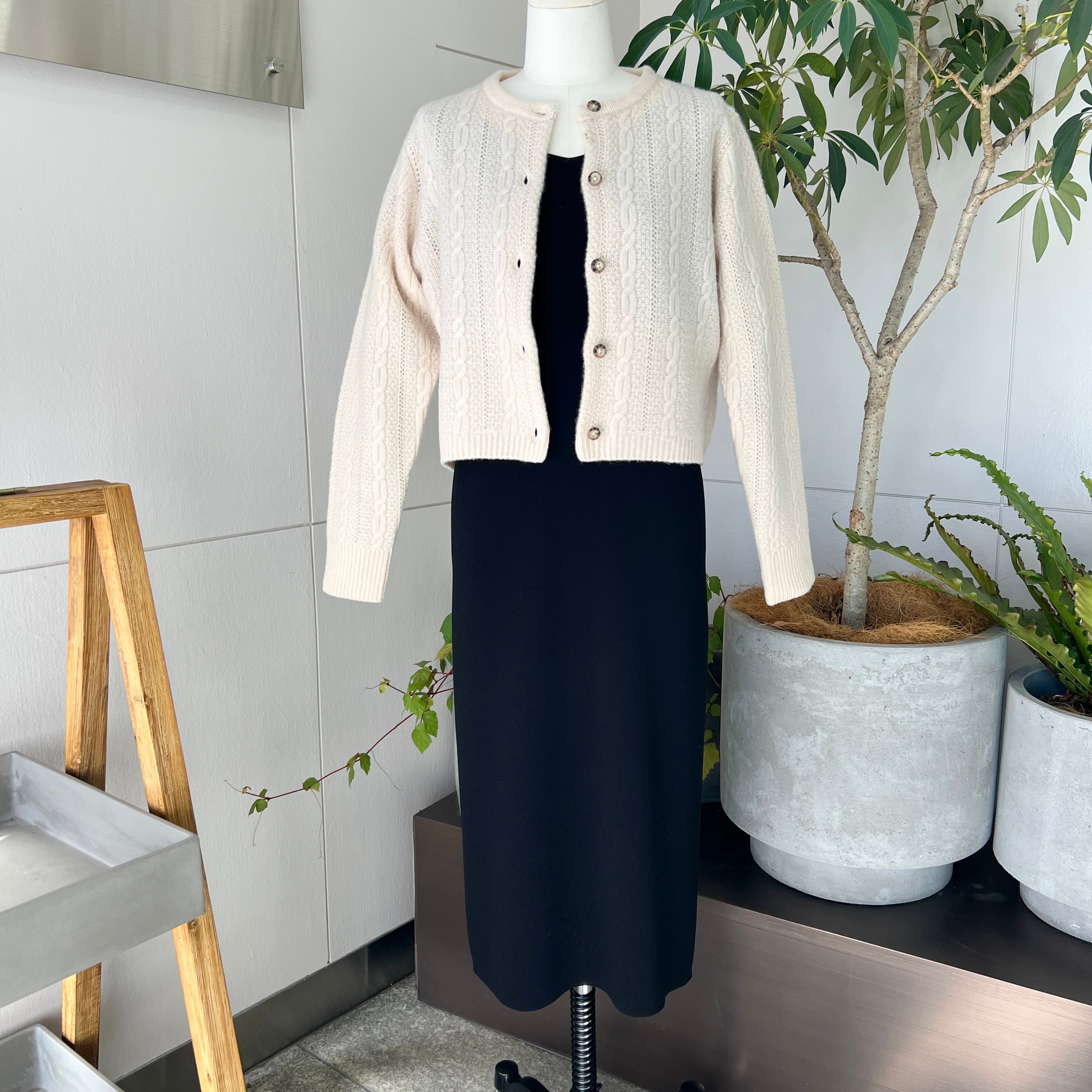 ロングリブスリーブ Vネックニットワンピース《PUPULA ププラ》