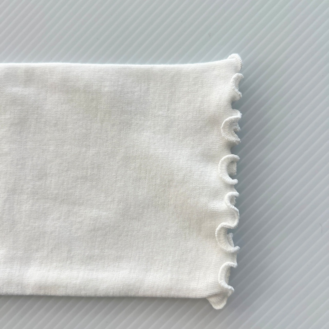 ・襟・裾・袖口にフリルのようなメロー加工してありお洒落です。
