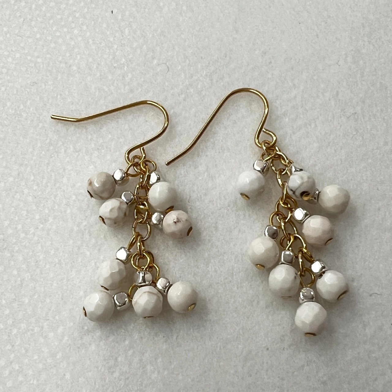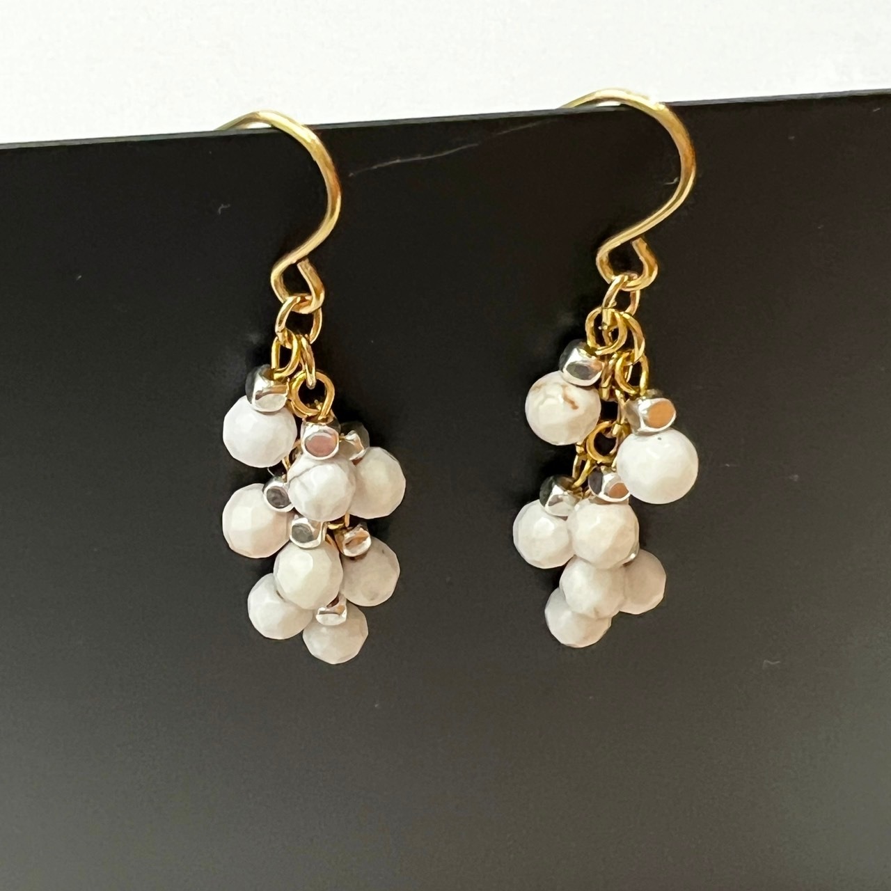 ・ぶどうのようなハウライトとヘマタイトとゴールドのコンビのお洒落なピアスです。