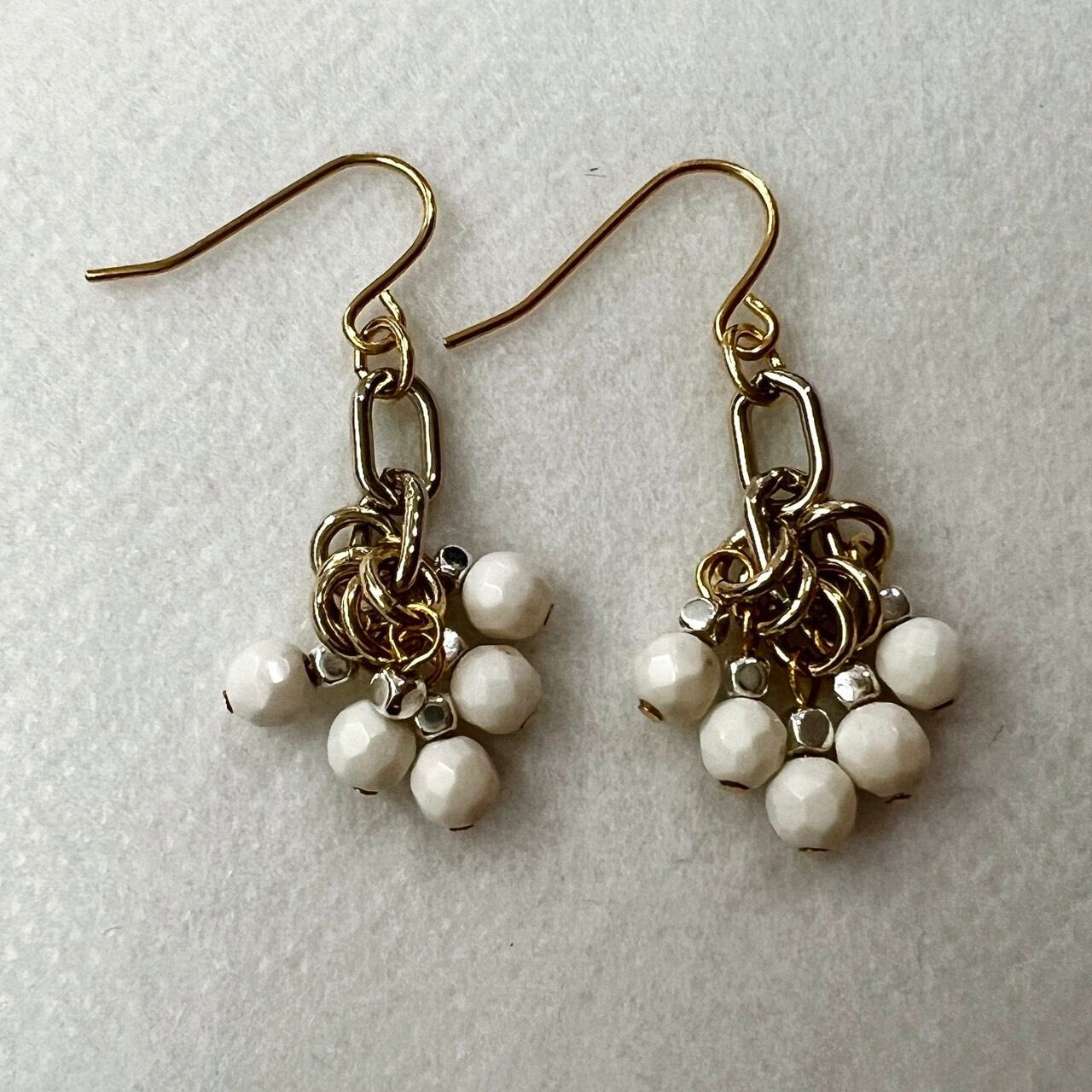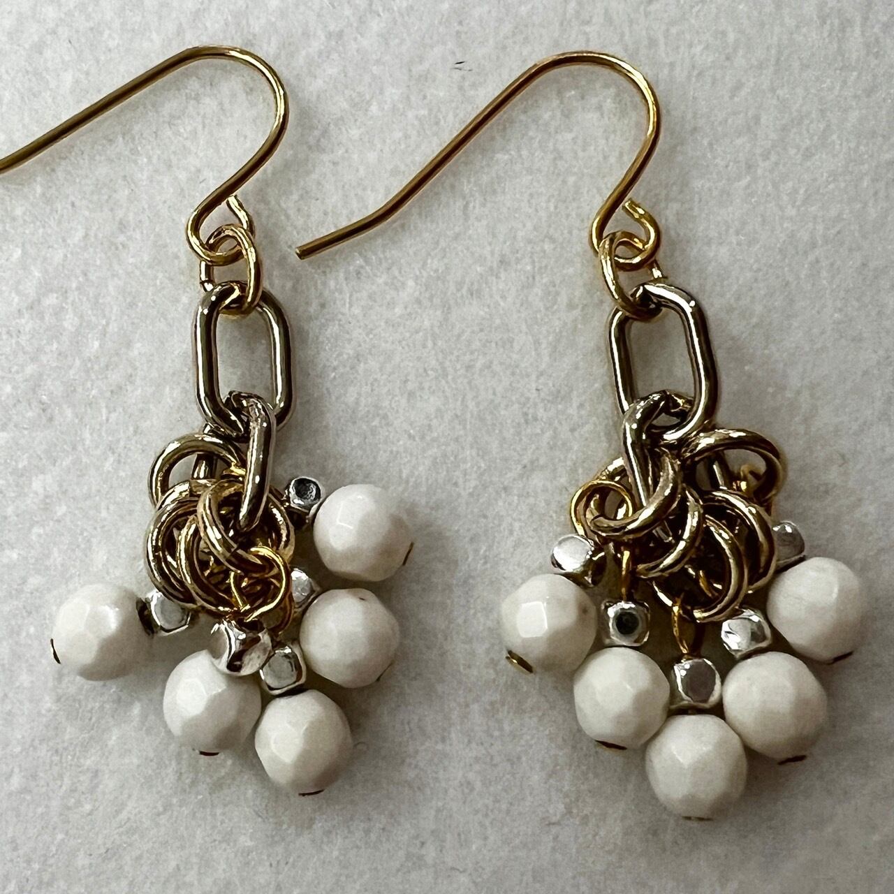 ・ハウライトとヘマタイトとゴールドのコンビのお洒落なピアスです。