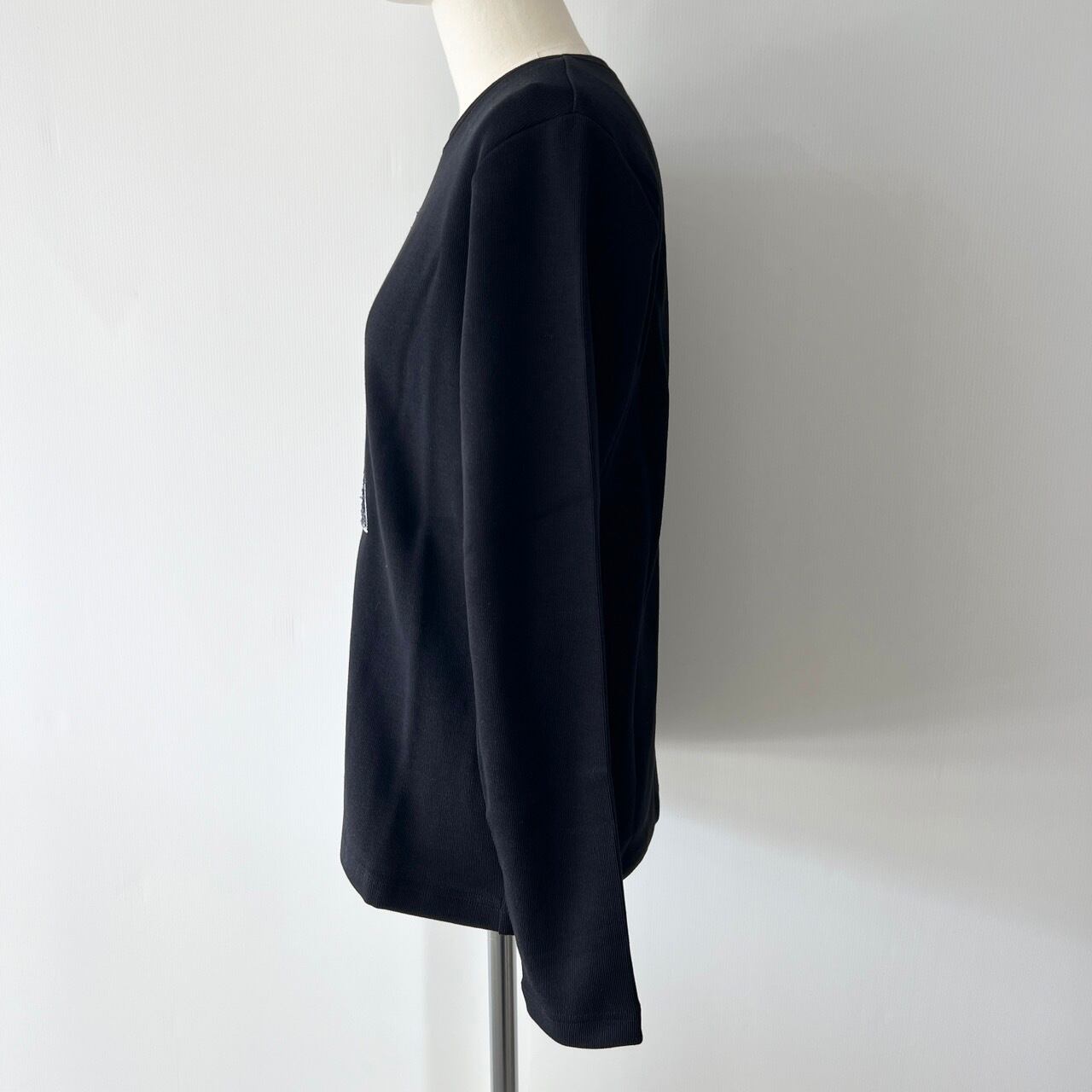 ・タワー柄のスパンコールが大人可愛いウールミックスジャージの長袖プルオーバーです。