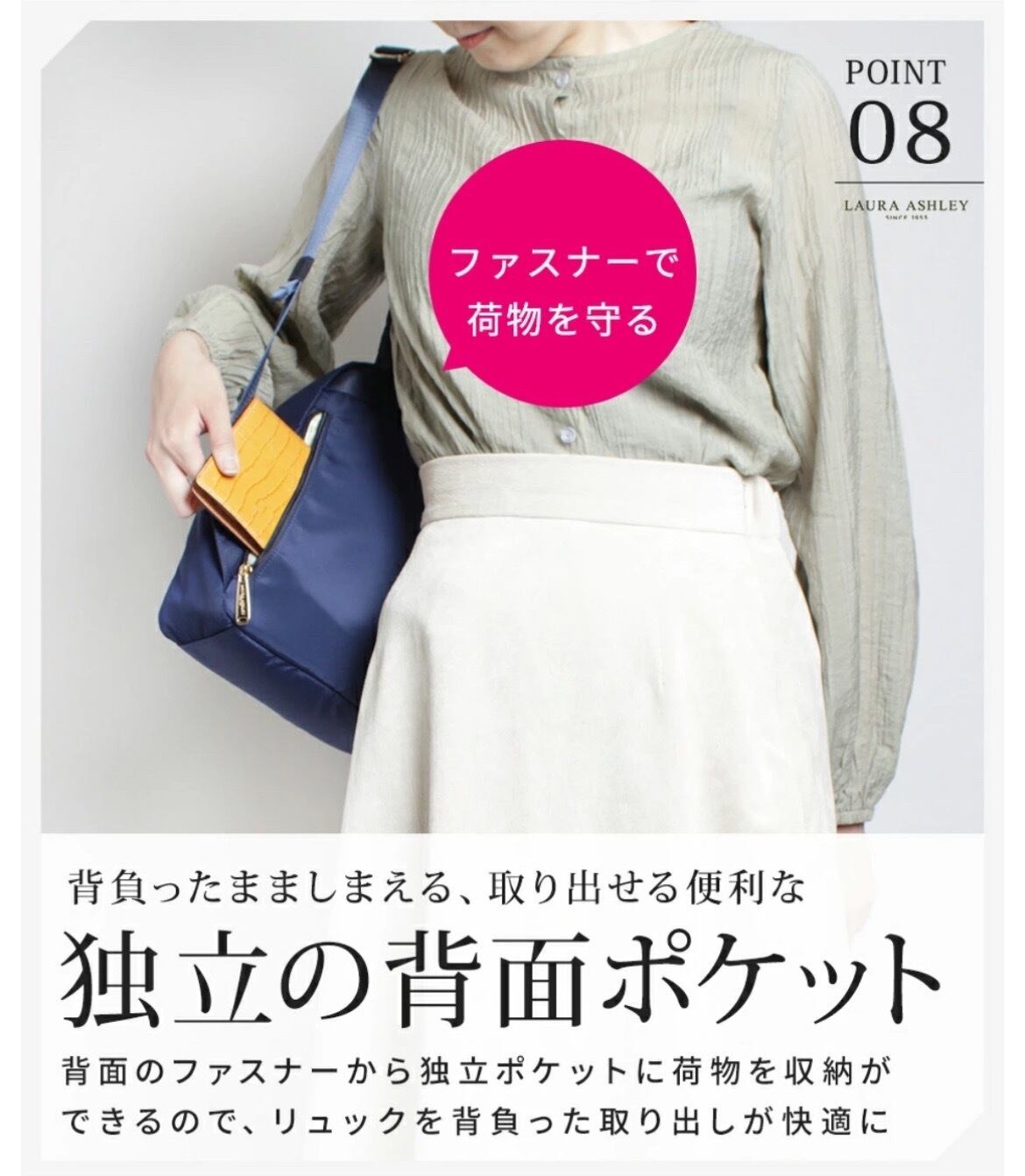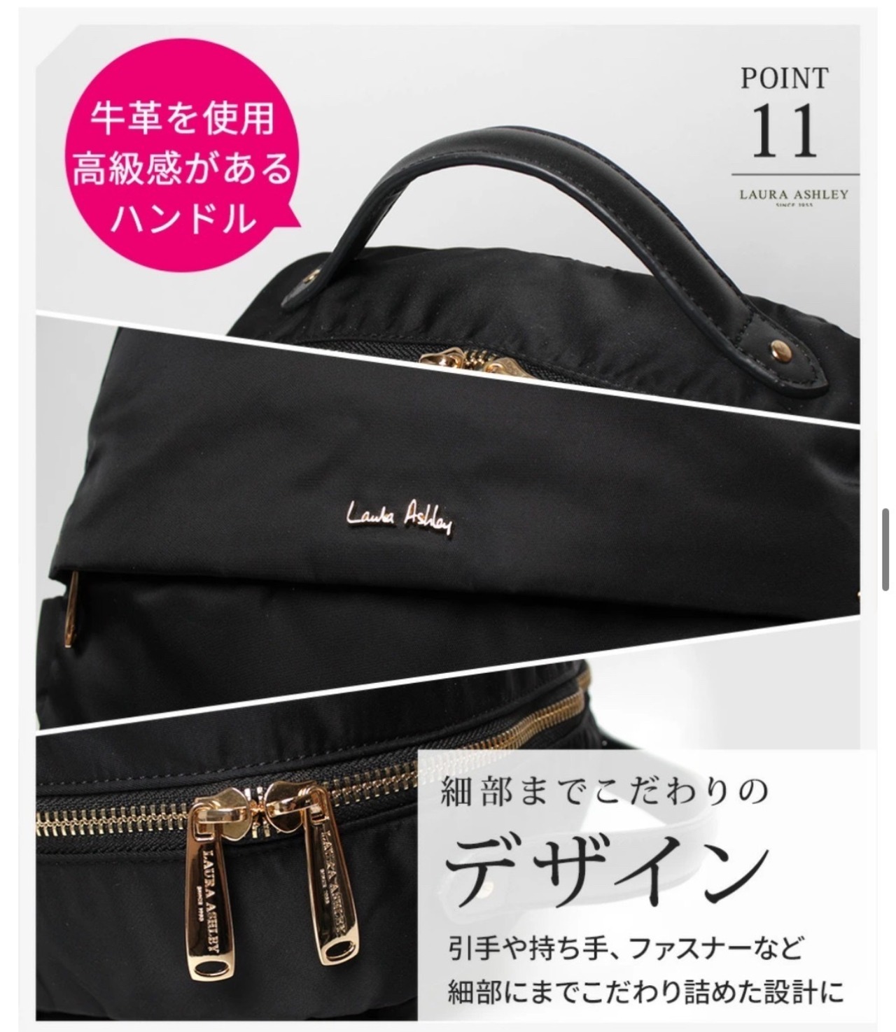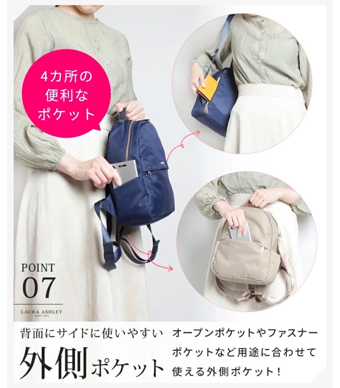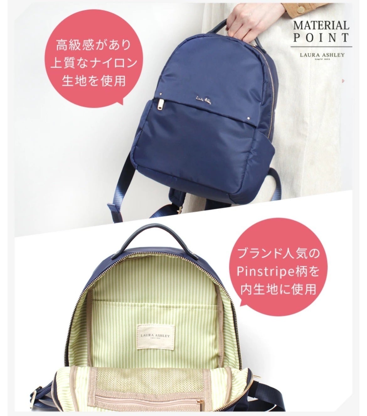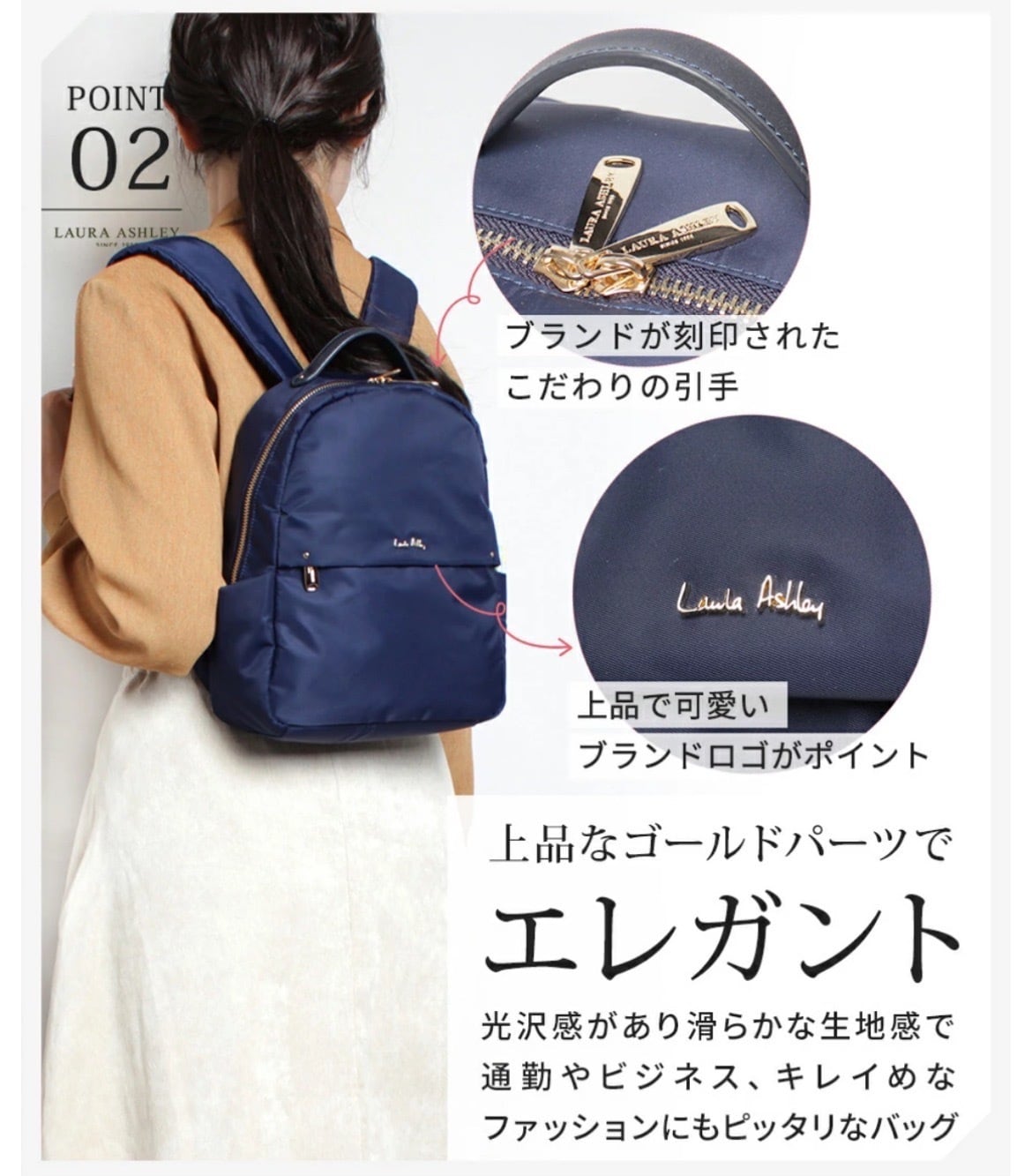 ・LAURA ASHLEY(ローラ アシュレイ)の軽量・はっ水加工で機能的!上品なナイロン素材のミニリュックです。