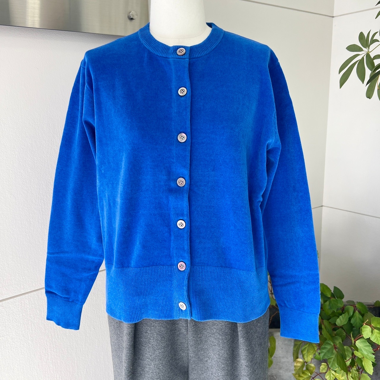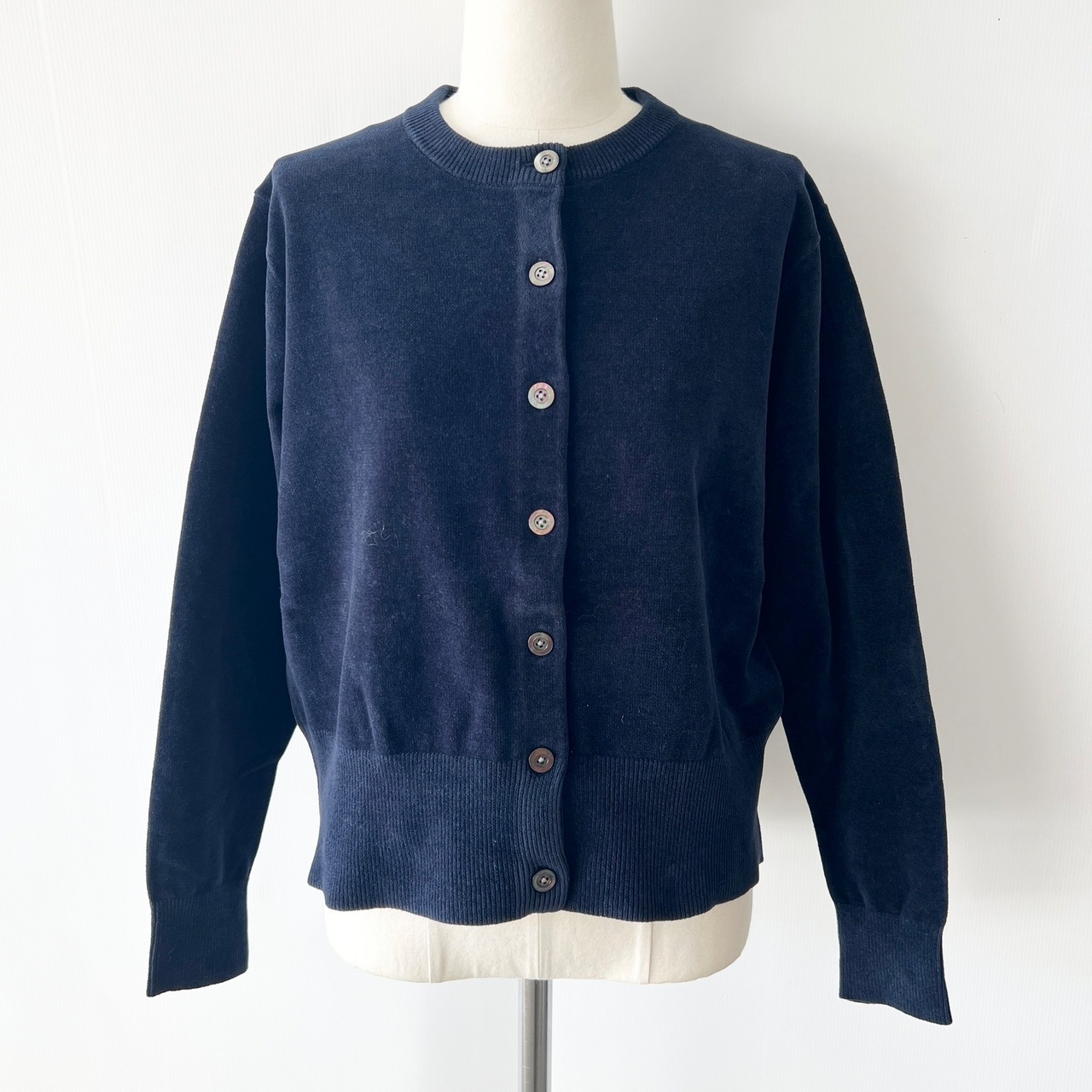 ・ベロアタッチの手触りが気持ちいい コットンモールのカーディガンです。